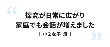 Q. 授業以外に学びを深めるサポートはありますか? A. 各授業ごとに、クエストと呼ばれる自由課題をご用意しています。また、授業内容に合わせたおすすめのおでかけ先や書籍の紹介、授業のない4週目に不定期で開催される関連イベントなど、日常でも探究を続けられるサポートをしています。