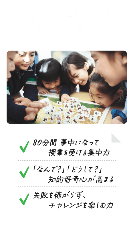Q. ついていけるか心配です。 A. 授業中は、授業を進めるメインファシリテーターとは別に、クラスファシリテーターと呼ばれるスタッフが、各クラスに2〜3名同席し、子どもたちのサポートをします。 低学年のお子様に言葉をかみ砕いて伝えたり、内に秘めるタイプのお子様の発言を引き出したり、子どもたちが安心して楽しんで授業に参加できる環境を作っています。